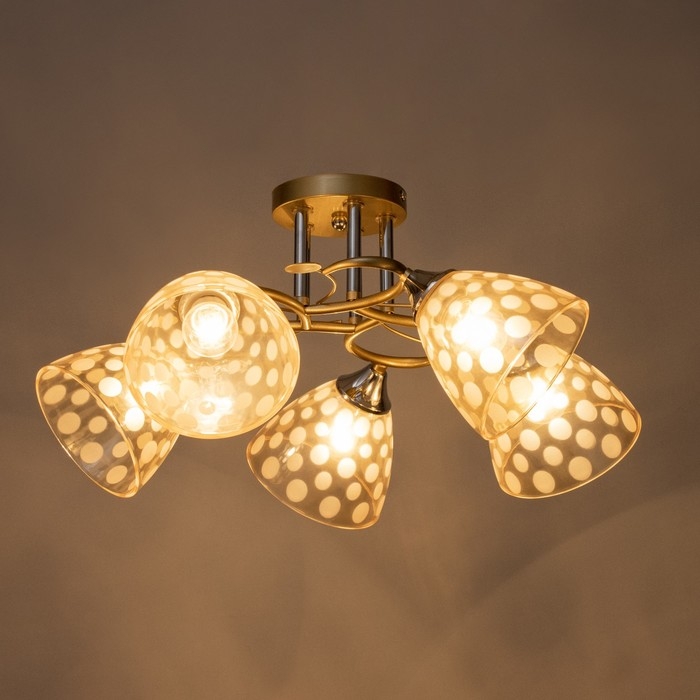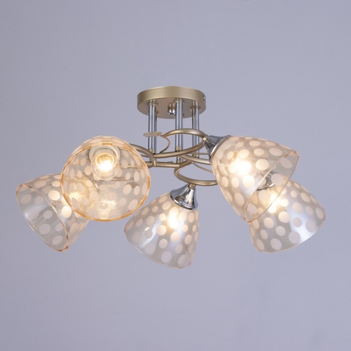 Светильник потолочный Соллар 60х60х26 , 5х60Вт Е27,Золото, хром