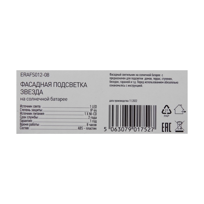 Новинка! Миниатюрный светильник на фасад здания со "звёздным" свечением – ЭРА ERAFS012-08 «Звезда» (арт. Б0057597). Солнечная батарея отлично накапливает энергию в течение светового дня. Фасадная подсветка ЭРА "Звезда" эффектно смотрится в составе группы светильников. Такие фасадные светильники помогут эффектно оформить здание, садовую постройку, веранду, беседку. Установить беспроводные LED-звёздочки можно в любом месте загородной территории – они не требуют привязки к электросети. Светильники отличаются минималистичным дизайном и компактными размерами – 7,6 х 7,6 х 2,5 см. Включаются автоматически с наступлением темноты.