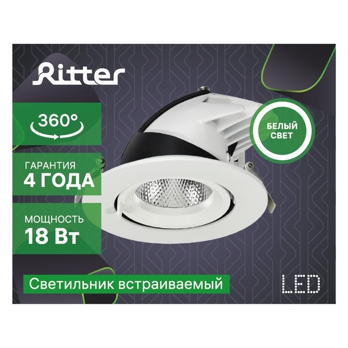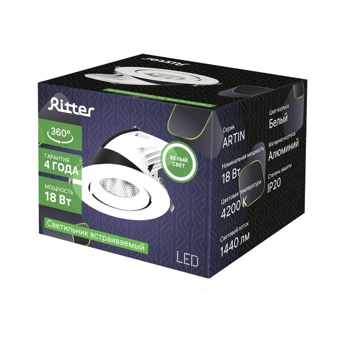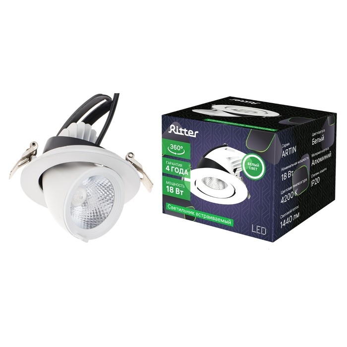 Светильник встр-й, ARTIN, выдвиж поворот конус 110х87мм LED 18Вт 1440Лм 4200К Al белый 59995