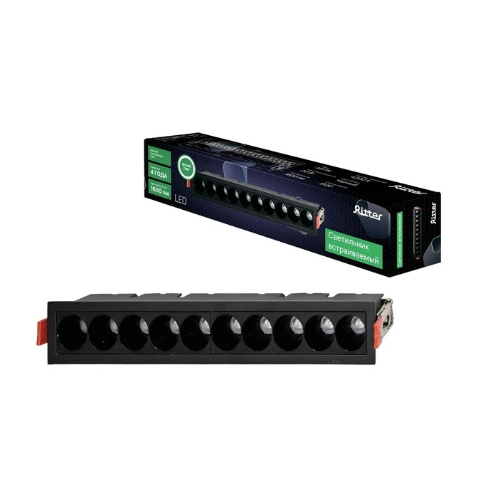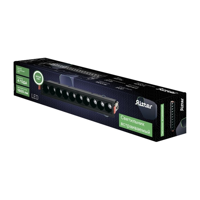 Светильник встраив-й, ARTIN, прямоугольный 285х45х55мм LED 20Вт 1600Лм 4200К Al черный 59940