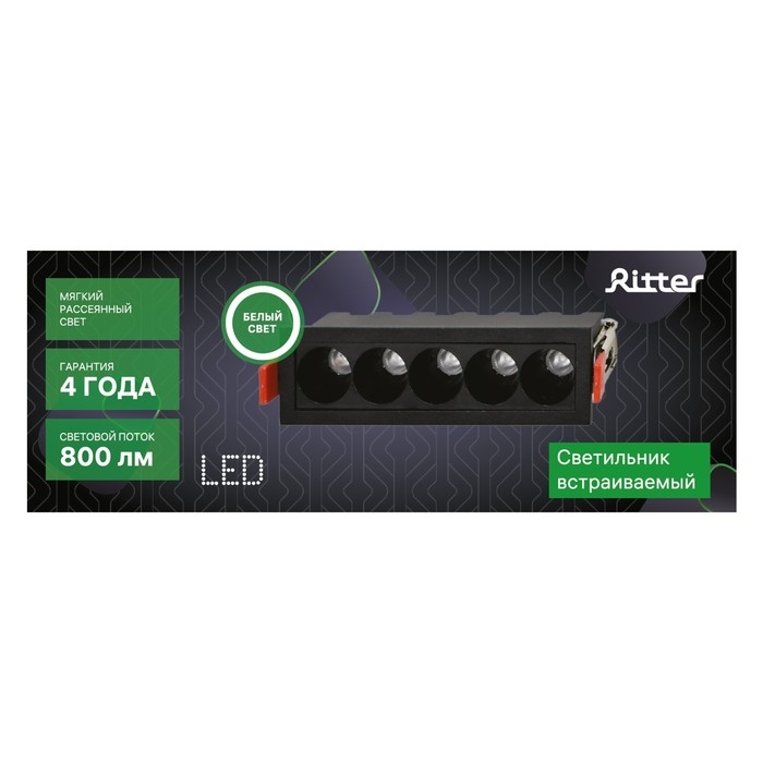 Светильник встраиваемый, ARTIN, прямоугольный 148х45х55мм LED 10Вт 800Лм 4200К Al черный 599