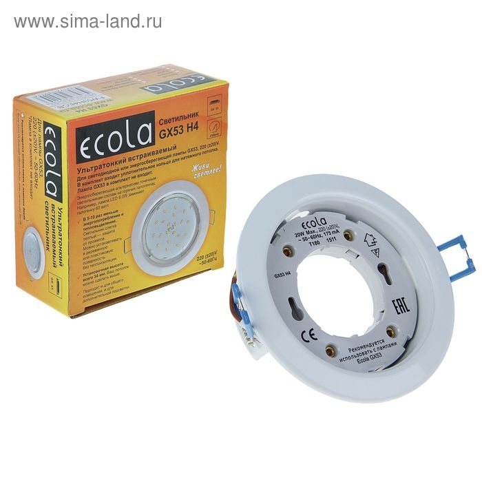 Светильник встраиваемый Ecola, GX53, H4, 38x106 мм, без рефлектора, белый