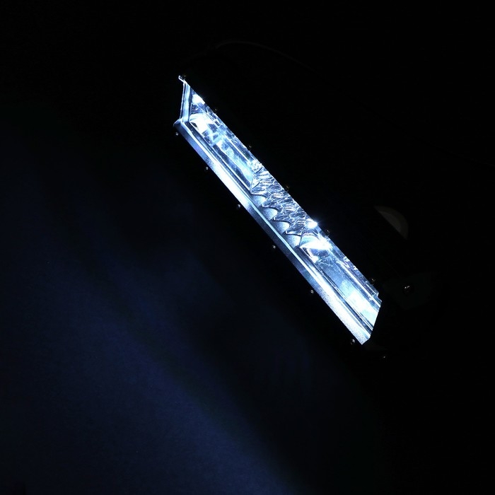 Это светодиодная балка длиной 30.8 см, предназначенная для монтажа в легковых и грузовых автомобилях, внедорожниках. Работает при напряжении сети 9-32В и общей мощностью 180Вт. Световой поток - 4300 Люмен. Провод длиной 40см для удобного подключения. Цвет света - холодный белый.
