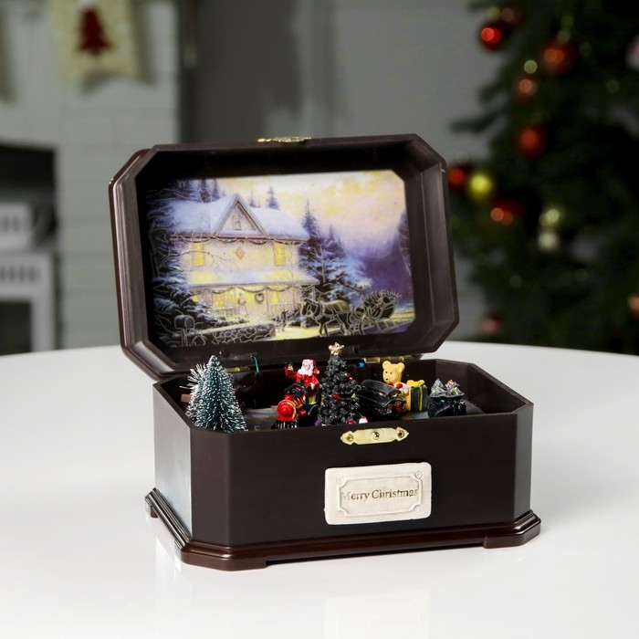 Светодиодная фигура «Дед Мороз на поезде» 31.5 × 18 × 18 см, полистоун, батарейки ААх3 (не в комплекте), USB, свечение тёплое белое