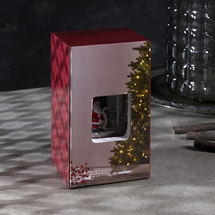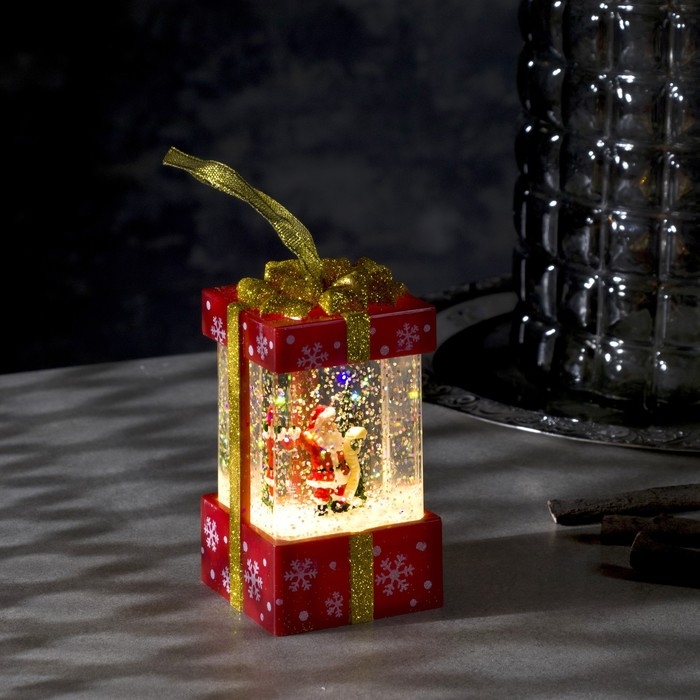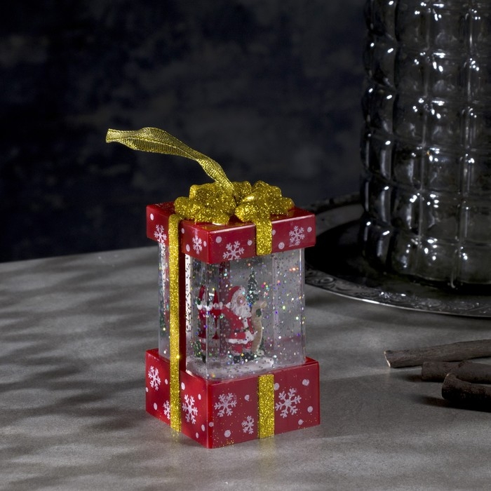 Светодиодная фигура «Дед Мороз в красном подарке» 6.3 × 11.5 × 6.3 см, пластик, блёстки, батарейки АААх3 (не в комплекте), свечение тёплое белое