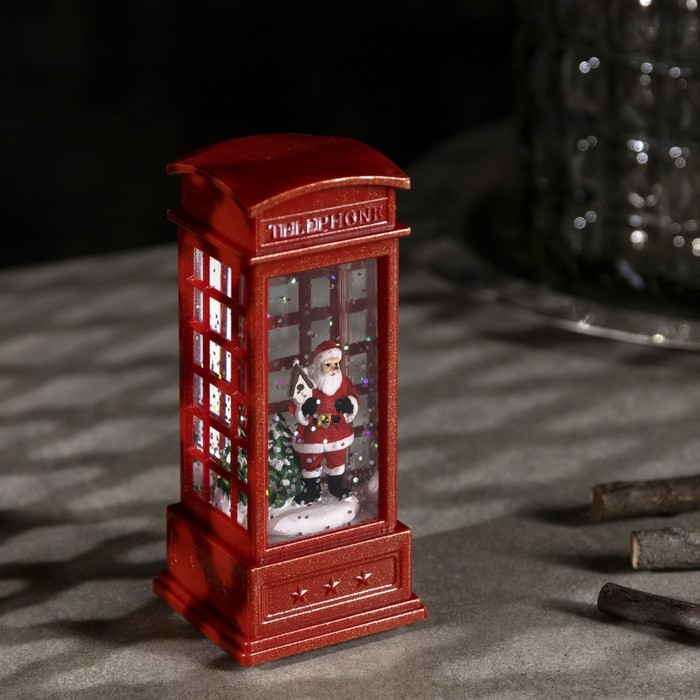 Светодиодная фигура «Дед Мороз в телефонной будке» 5 × 12 × 5 см, пластик, блёстки, батарейки AG13х3 (в комплекте), свечение тёплое белое