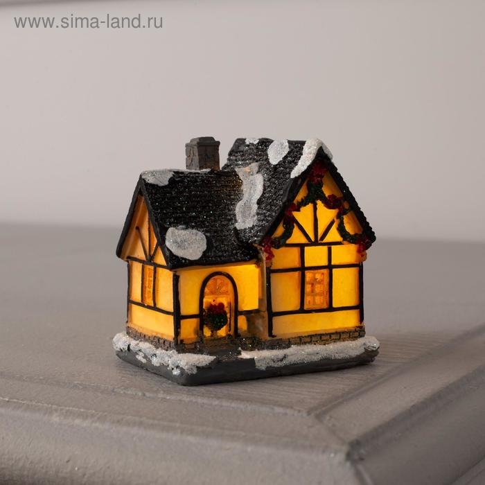 Светодиодная фигура «Дом с еловой гирляндой», керамика, батарейки AG13х3 (в комплекте), свечение тёплое белое
