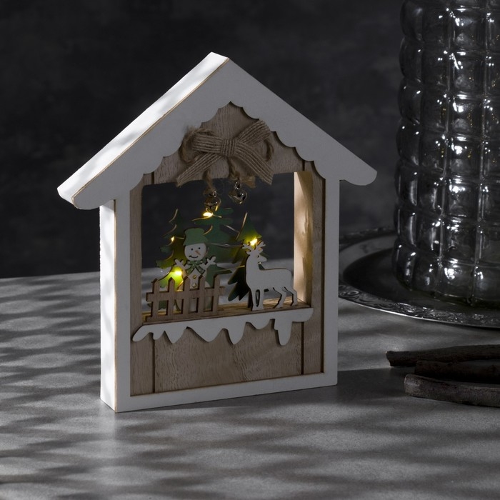 Светодиодная фигура «Дом со снеговиком» 13 × 19 × 3 см, дерево, батарейки АААх2 (не в комплекте), свечение тёплое белое