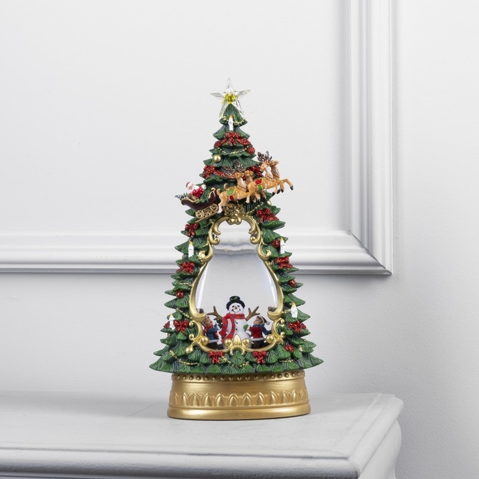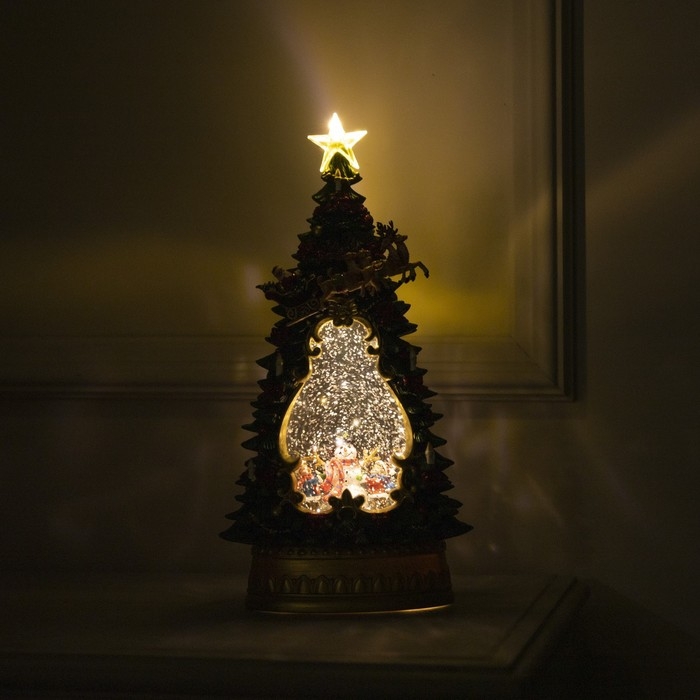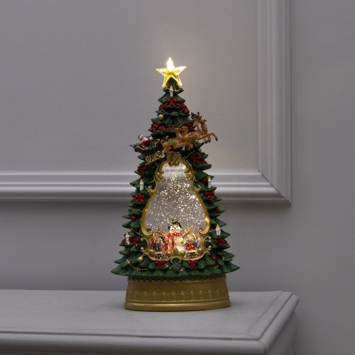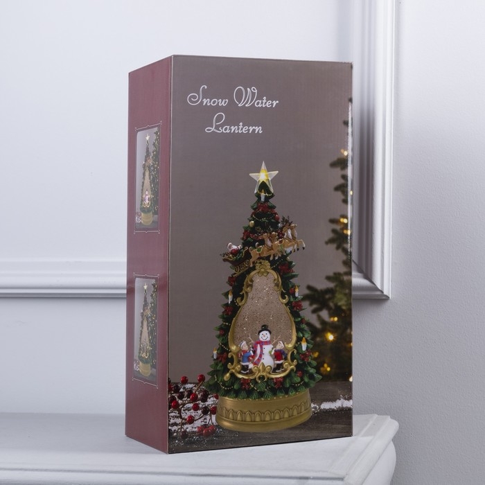 Светодиодная фигура «Ёлка с детьми и снеговиком» 19 × 35 × 11 см, пластик, батарейки ААх3 (не в комплекте), USB, свечение тёплое белое