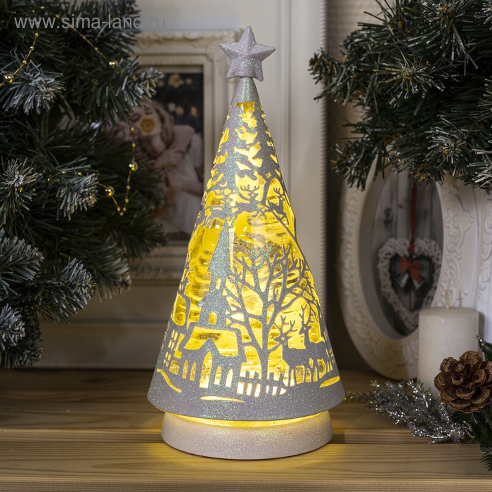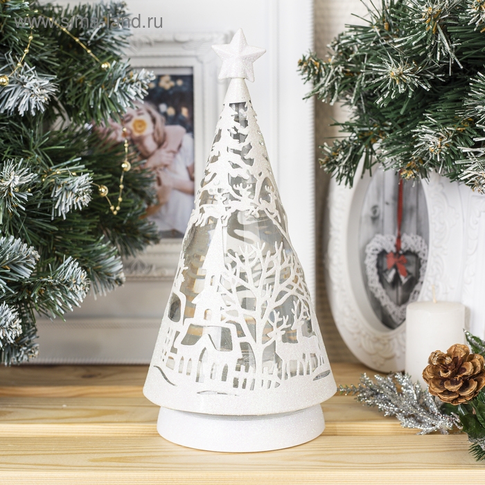Светодиодная фигура «Ёлка с оленями» 13 × 31 × 13 см, пластик, батарейки ААх3 (не в комплекте), свечение тёплое белое