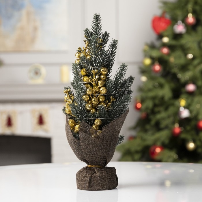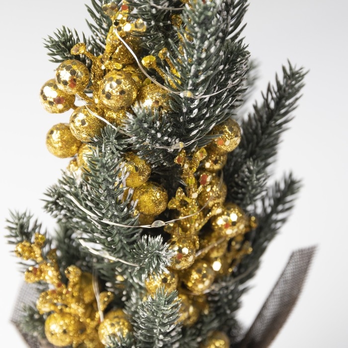 Светодиодная фигура «Ёлка с золотистым декором», 14 × 35 × 7.5 см, пластик, батарейки CR2032х2 (в комплекте), свечение тёплое белое