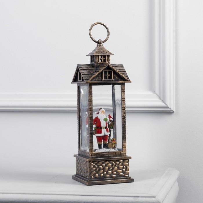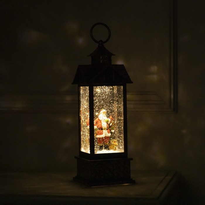 Светодиодная фигура «Фонарь с Дедом Морозом» 10 × 30 × 10 см, пластик, батарейки ААх3 (не в комплекте), USB, свечение тёплое белое