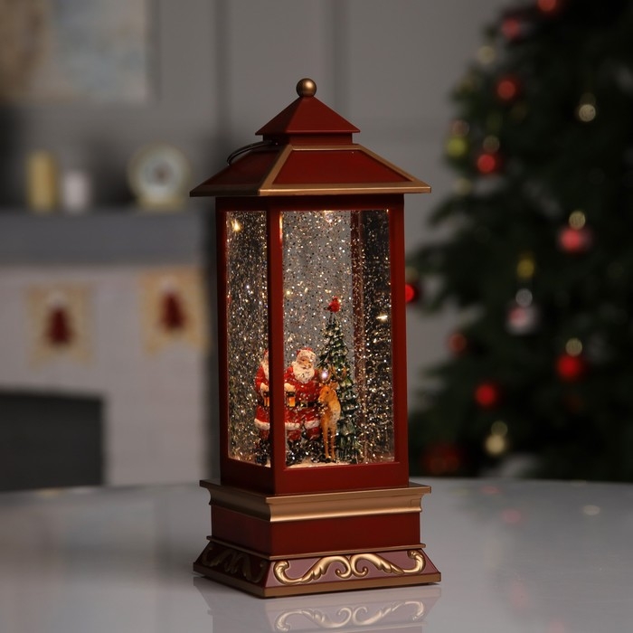 Светодиодная фигура «Фонарь с Дедом Морозом» 10.5 × 26 × 10.5 см, пластик, батарейки ААх3 (не в комплекте), USB, свечение тёплое белое