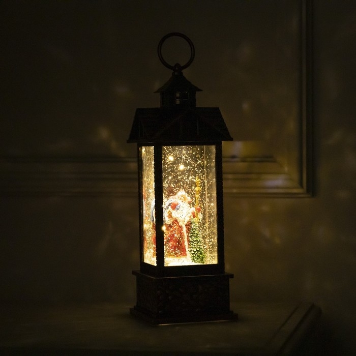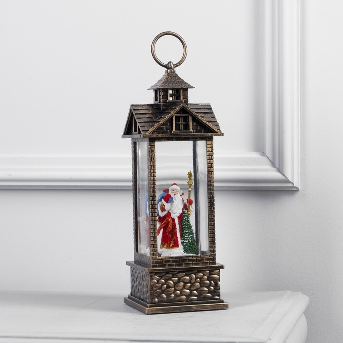 Светодиодная фигура «Фонарь с Дедом Морозом и подарками» 10 × 30 × 10 см, пластик, батарейки ААх3 (не в комплекте), USB, свечение тёплое белое