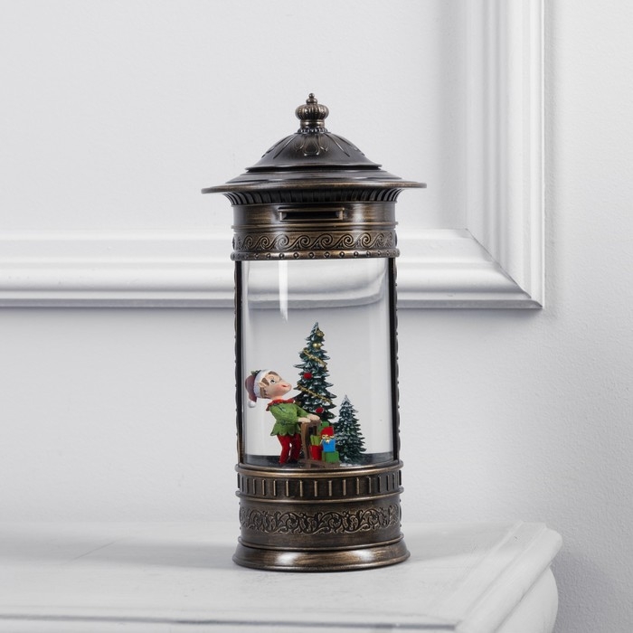Светодиодная фигура «Фонарь с эльфом» 14 × 27 × 14 см, пластик, батарейки ААх3 (не в комплекте), USB, свечение тёплое белое