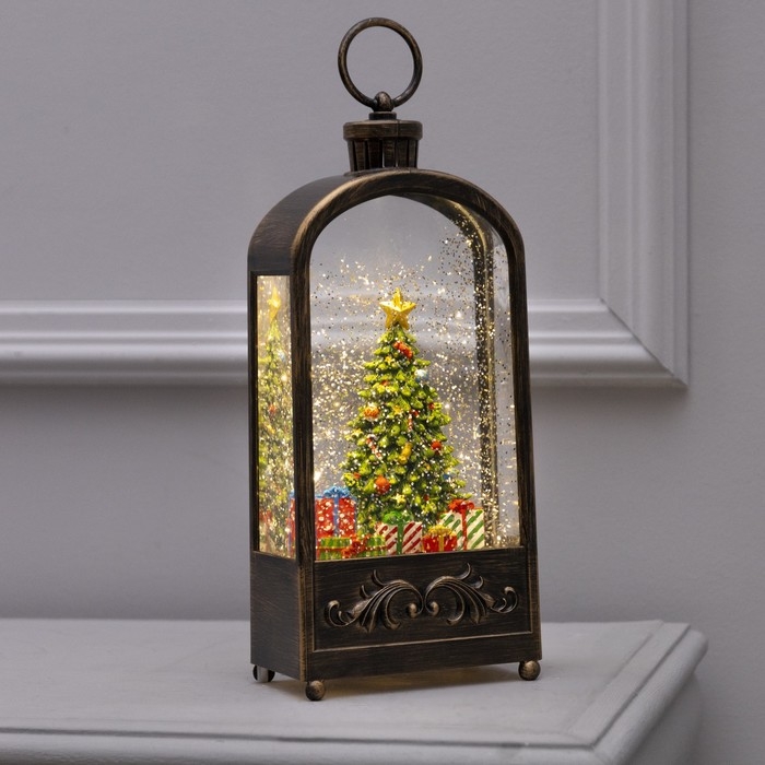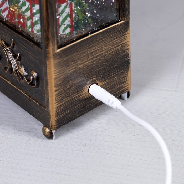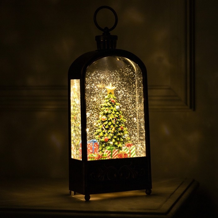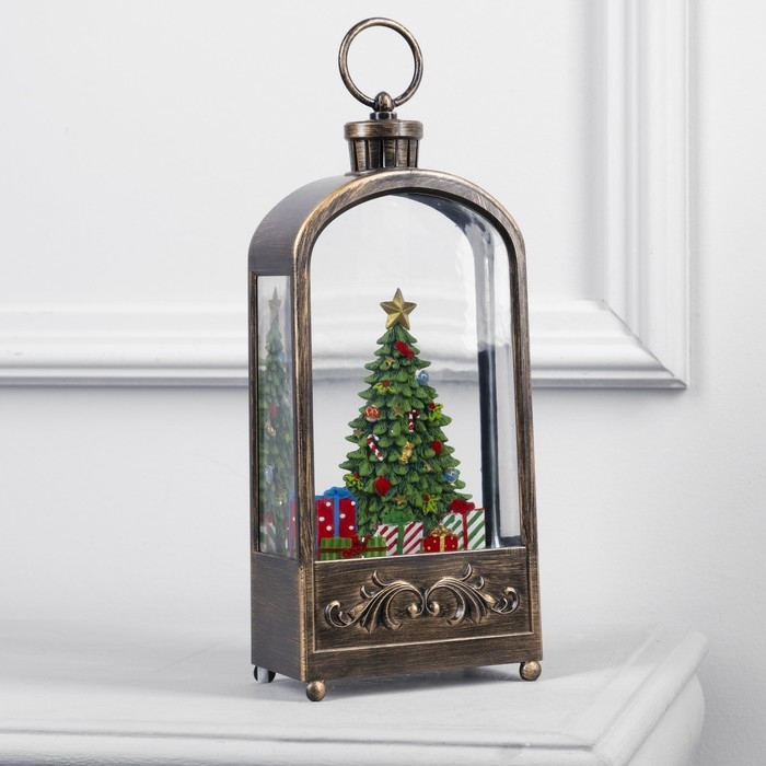 Светодиодная фигура «Фонарь с ёлкой» 13 × 30 × 7 см, пластик, батарейки ААх3 (не в комплекте), USB, свечение тёплое белое