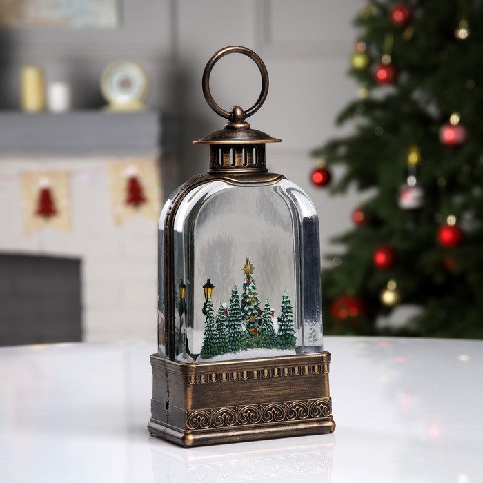 Светодиодная фигура «Фонарь с городом» 10.7 × 20.5 × 6.2 см, пластик, батарейки ААх3 (не в комплекте), USB, свечение тёплое белое