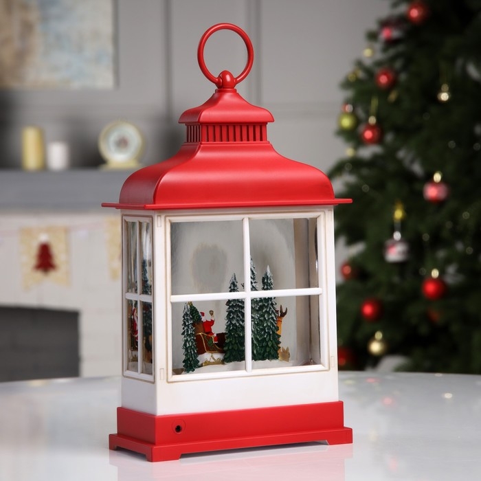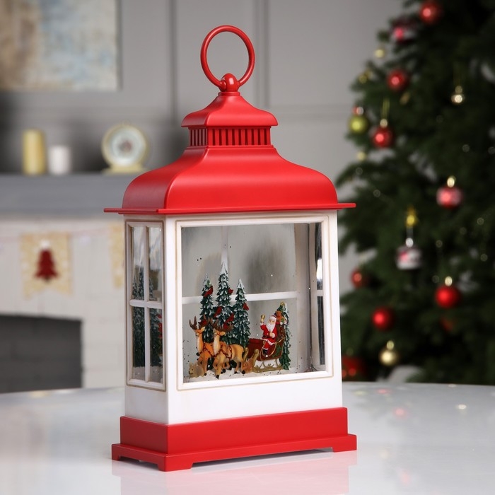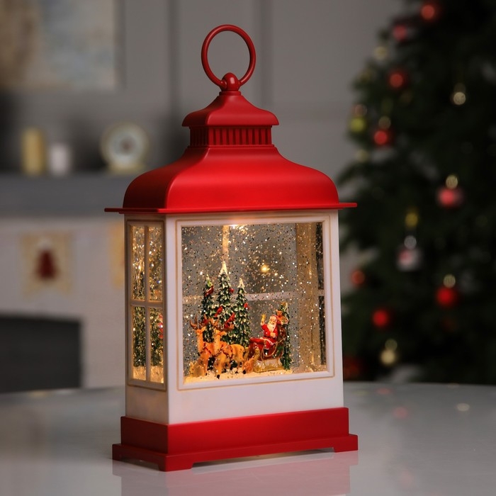 Светодиодная фигура «Фонарь с упряжкой» 16.5 × 26.5 × 7.8 см, пластик, батарейки ААх3 (не в комплекте), USB, свечение тёплое белое