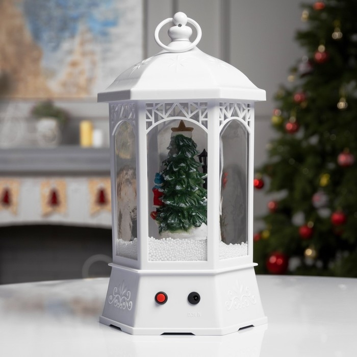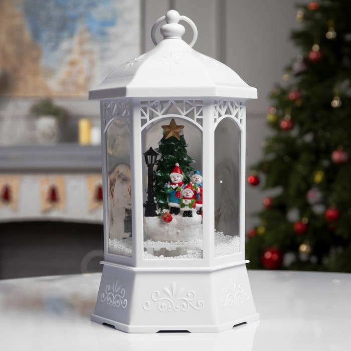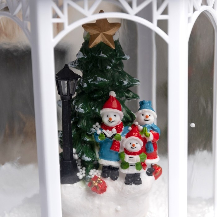 Светодиодная фигура «Фонарь со снеговиками и ёлкой» 20 × 27 × 20 см, пластик, батарейки ААх3 (не в комплекте), USB, свечение белое