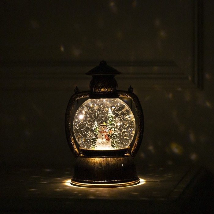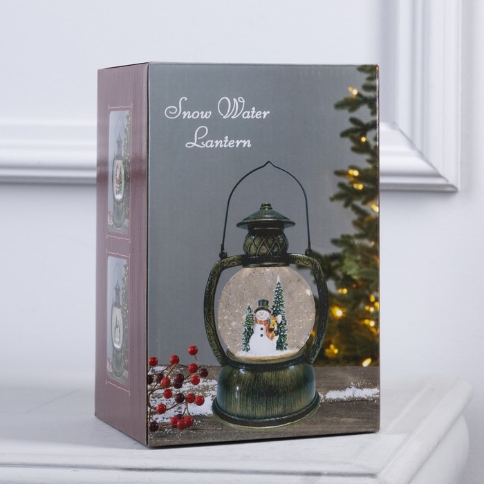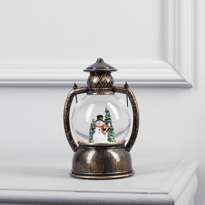 Светодиодная фигура «Фонарь со снеговиком» 13 × 19 × 11 см, пластик, батарейки ААх3 (не в комплекте), USB, свечение тёплое белое