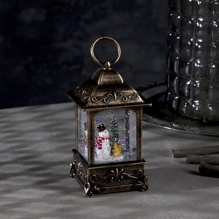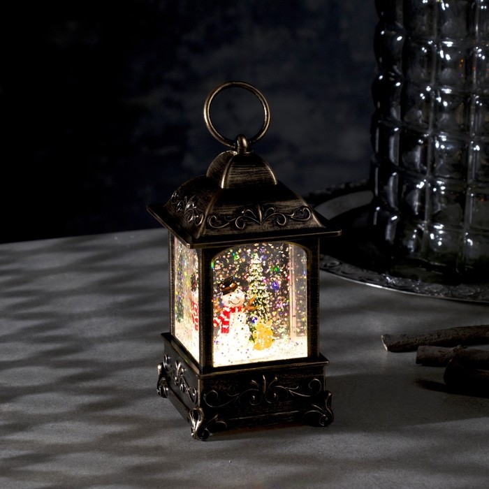 Светодиодная фигура «Фонарь со снеговиком» 7.5 × 13.5 × 7.5 см, пластик, блёстки, батарейки АААх3 (не в комплекте), свечение тёплое белое