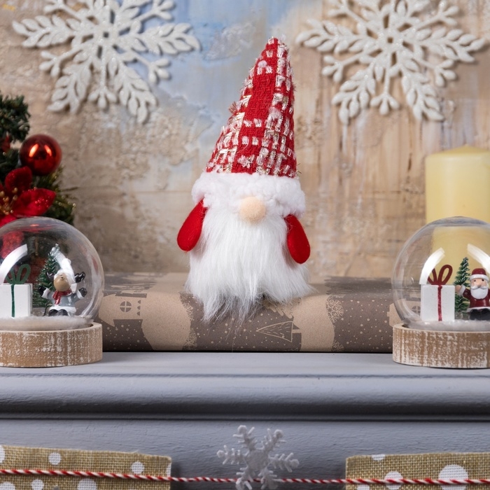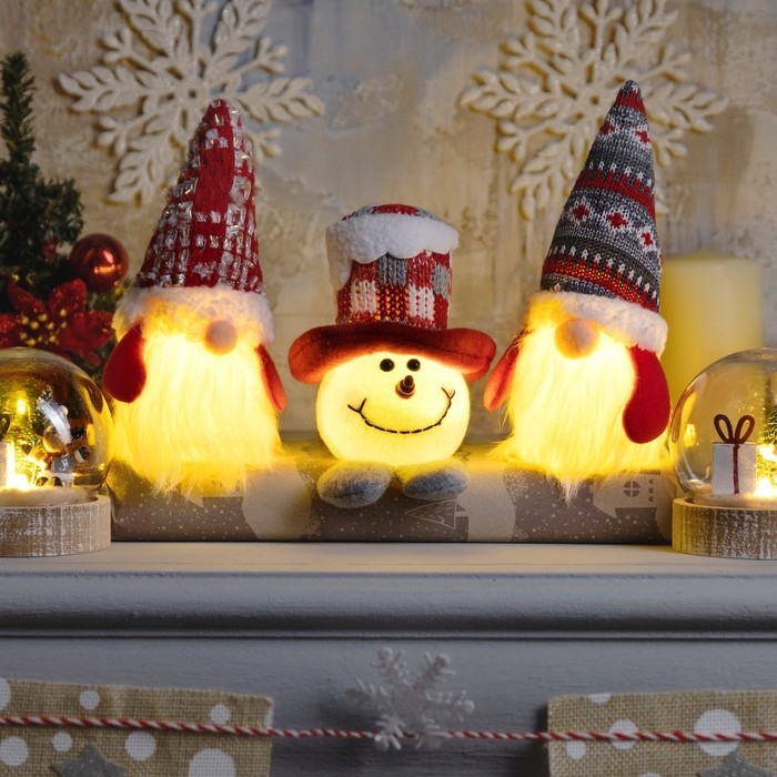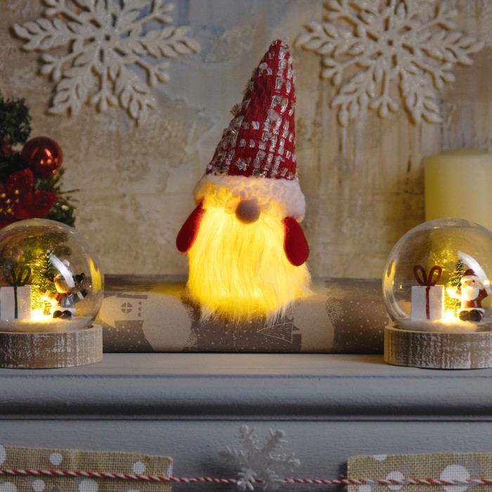 Светодиодная фигура «Гном в красном колпаке» 6.5 × 17 × 6.5 см, текстиль, батарейки LR1130х3 (в комплекте), свечение тёплое белое