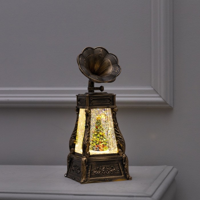 Светодиодная фигура «Граммофон с ёлкой» 11 × 28 × 11 см, пластик, батарейки ААх3 (не в комплекте), USB, свечение тёплое белое