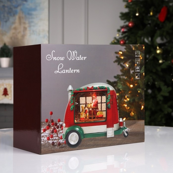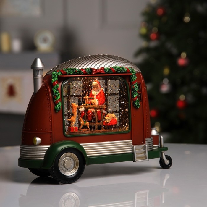 Светодиодная фигура «Мастерская Санты на колёсах» 28.5 × 17.5 × 10.5 см, пластик, батарейки ААх3 (не в комплекте), USB, свечение тёплое белое