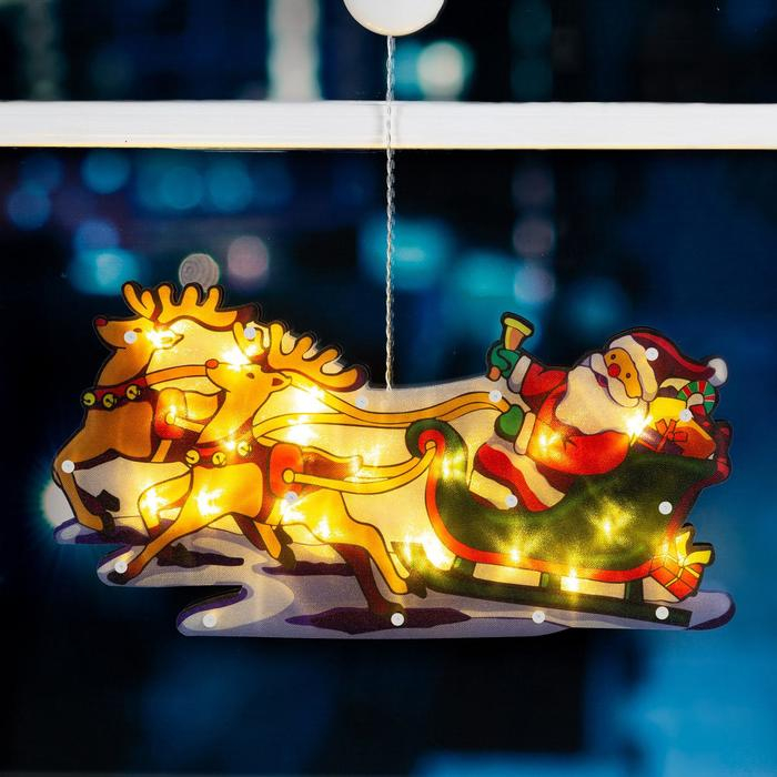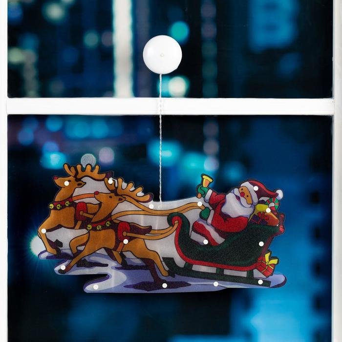 Светодиодная фигура на присоске «Дед Мороз в санях» 44 × 25 см, пластик, батарейки АААх3 (не в комплекте), свечение тёплое белое
