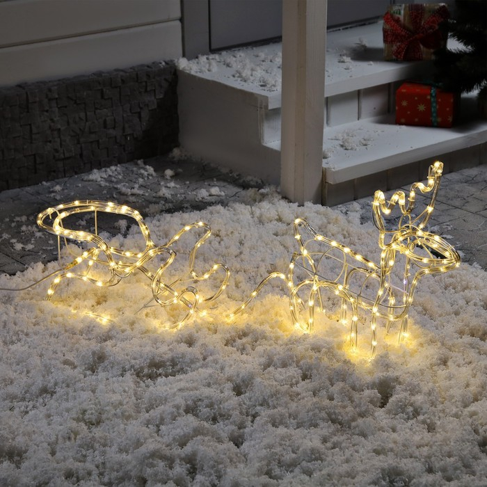 Светодиодная фигура «Олень с санями», олень: 48 × 48 × 19 см, сани: 45 × 23 × 23 см, дюралайт, 216 LED, 220 В, мерцание, свечение белое/тёплое белое