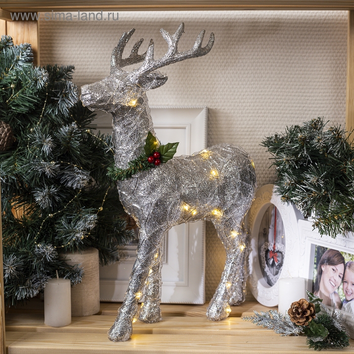 Светодиодная фигура «Олень серебристый» 30 × 46 × 15 см, акрил, батарейки CR2032х2 (в комплекте), свечение тёплое белое
