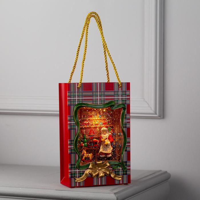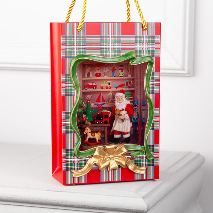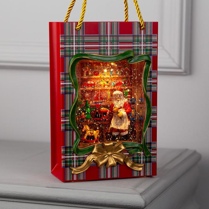 Светодиодная фигура «Пакет с Дедом Морозом» 15 × 23 × 7 см, пластик, батарейки ААх3 (не в комплекте), USB, свечение тёплое белое