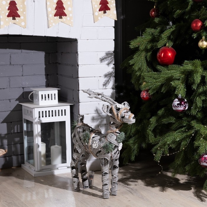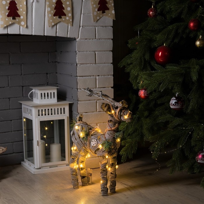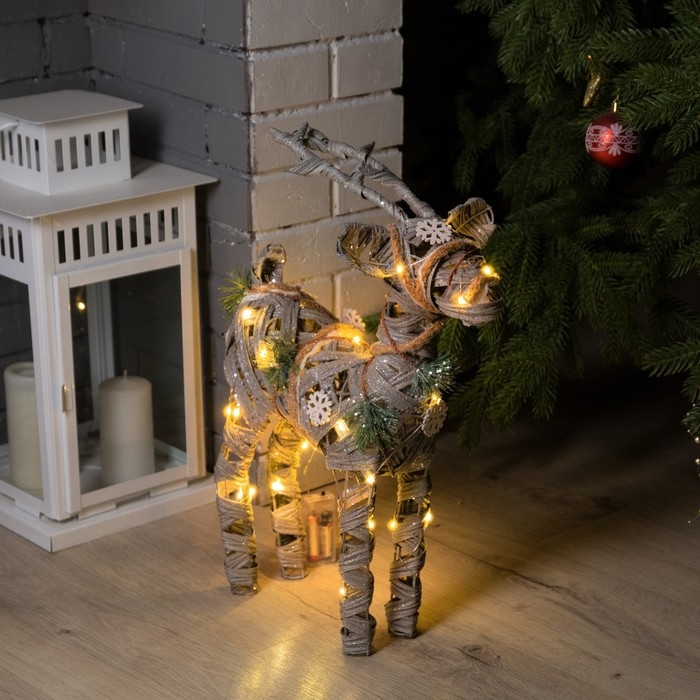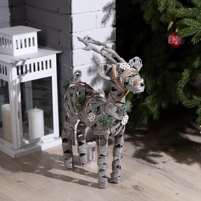 Светодиодная фигура «Серый олень» 34 × 48 × 12 см, металл, текстиль, батарейки ААх2 (не в комплекте), свечение тёплое белое
