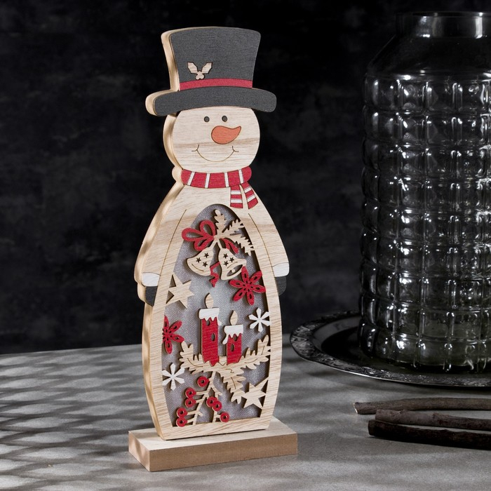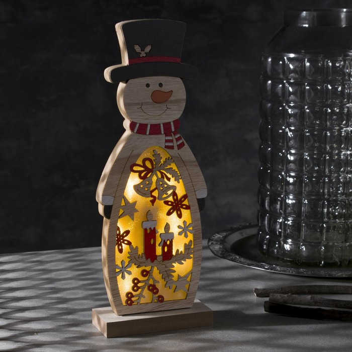 Светодиодная фигура «Снеговик» 11 × 30 × 5 см, дерево, батарейки АААх2 (не в комплекте), свечение тёплое белое