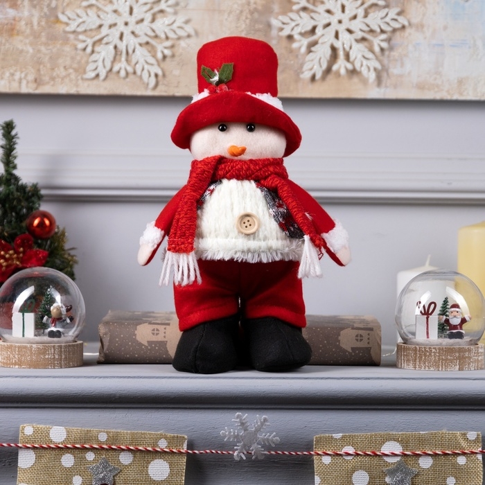 Светодиодная фигура «Снеговик» 13 × 30 × 8 см, текстиль, батарейки LR1130х3 (в комплекте), свечение тёплое белое