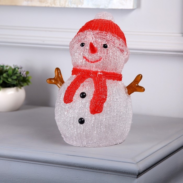 Светодиодная фигура «Снеговик» 15 × 16 × 10 см, акрил, 20 LED, батарейки АА × 3 (не в комплекте), свечение белое