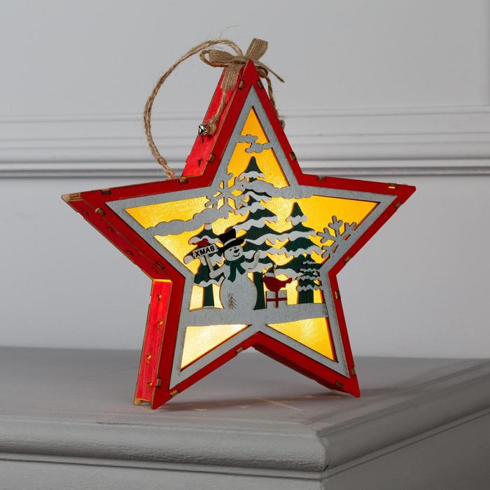 Светодиодная фигура «Снеговик в лесу» 22 × 22 × 4 см, дерево, батарейки АААх2 (не в комплекте), свечение тёплое белое