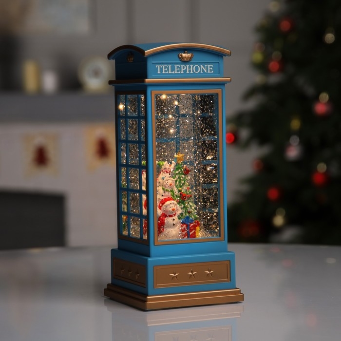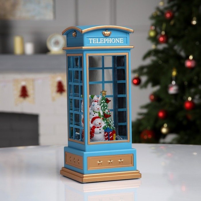 Светодиодная фигура «Снеговик в телефонной будке» 10.5 × 25 × 10.5 см, пластик, батарейки ААх3 (не в комплекте), USB, свечение тёплое белое
