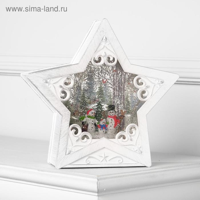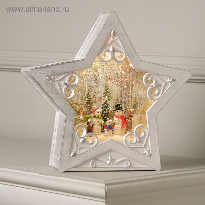 Светодиодная фигура «Снеговики у ёлки» 26 × 26 × 8 см, пластик, батарейки ААх3 (не в комплекте), свечение тёплое белое