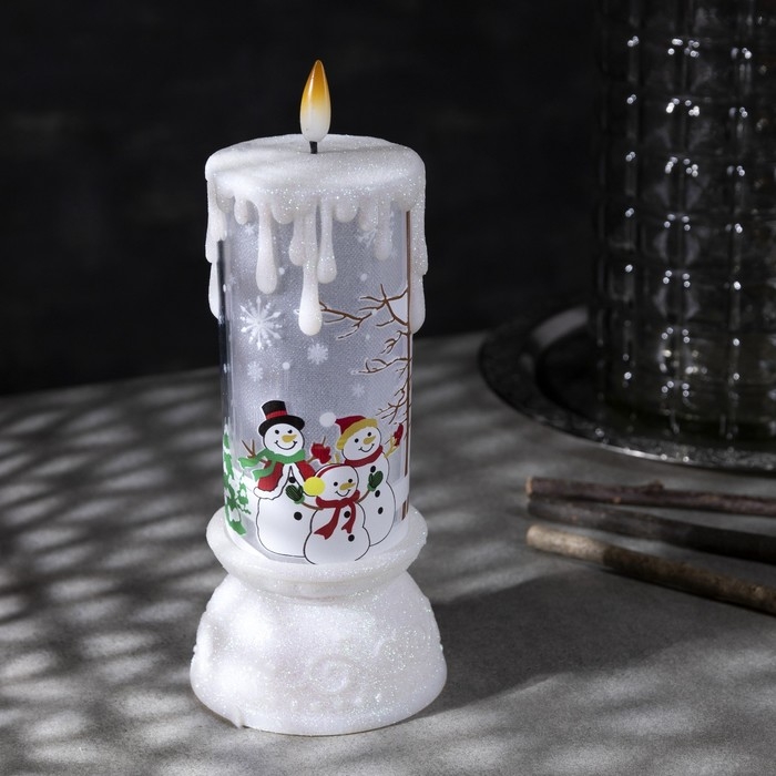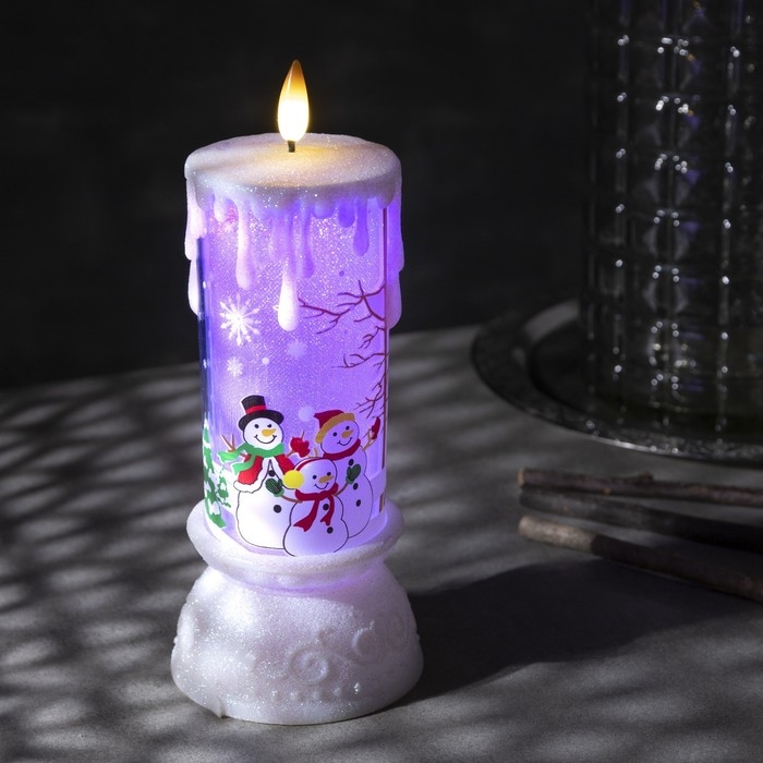 Светодиодная фигура «Свеча со снеговиком» 10 × 23 × 10 см, пластик, батарейки ААх3 (не в комплекте), свечение RGB