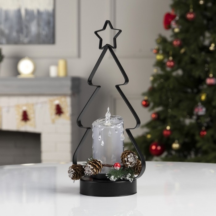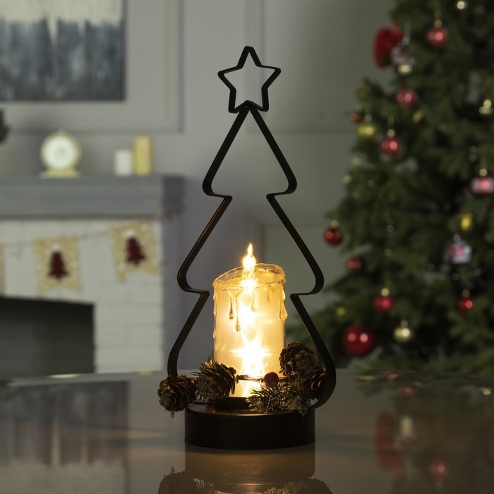 Светодиодная фигура «Свечка в ёлке» 15 × 32 × 11 см, металл, батарейки ААх3 (не в комплекте), свечение тёплое белое