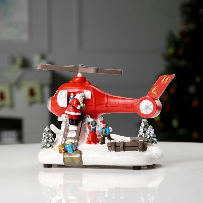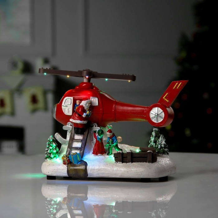 Светодиодная фигура «Вертолёт с Дедом Морозом» 31.5 × 18 × 18 см, полистоун, батарейки ААх3 (не в комплекте), USB, свечение мульти