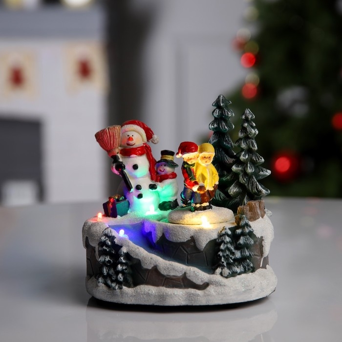 Светодиодная фигура «Весёлые снеговики» 20 × 20 × 16 см, полистоун, батарейки ААх3 (не в комплекте), USB, свечение мульти