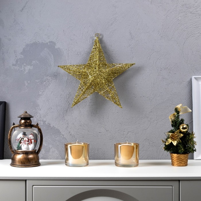 Светодиодная фигура «Золотистая звезда» 30.5 см, металл, батарейки ААх2 (не в комплекте), свечение тёплое белое