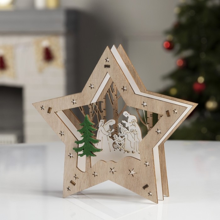 Светодиодная фигура «Звёздный лес» 17 × 17 × 4.5 см, дерево, батарейки АААх2 (не в комплекте), свечение тёплое белое