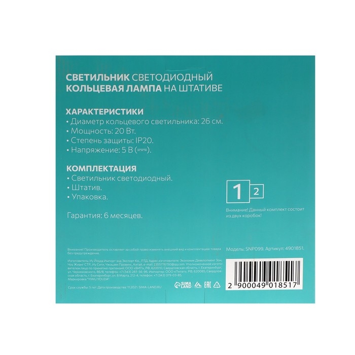 Светодиодная кольцевая лампа на штативе Luazon SNP099, 10" (26 см), 10 Вт, штатив 34-108 см