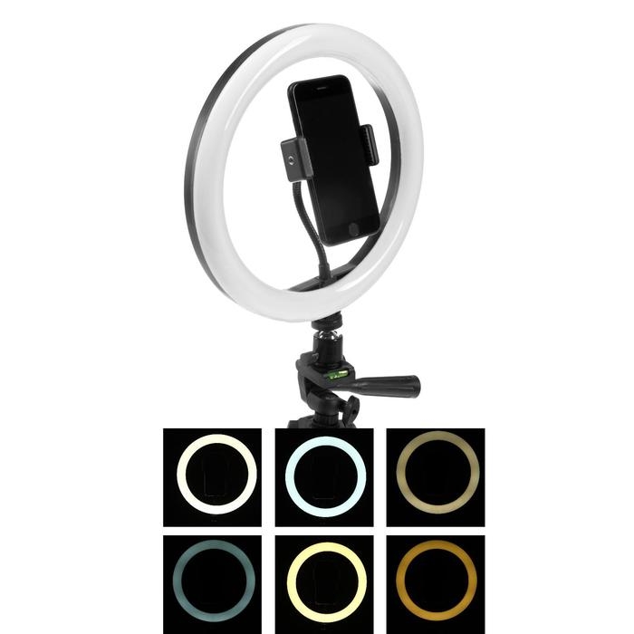 Светодиодная кольцевая лампа на штативе Luazon CB-31, 10" (26 см), 20 Вт, 3 режима, USB