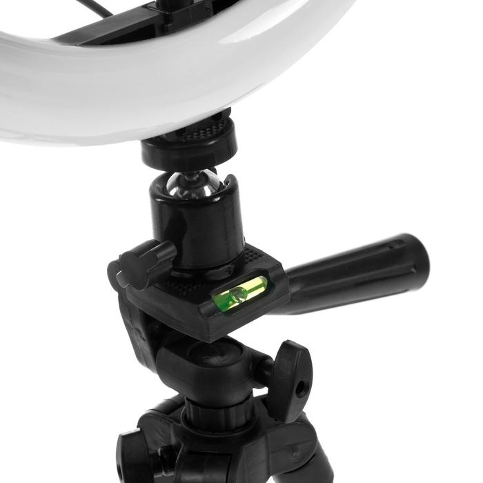 Светодиодная кольцевая лампа на штативе от Luazon поможет создать равномерное освещение для съёмок фото и видео. Штатив позволяет зафиксировать смартфон и регулировать его угол наклона. Для работы подключите устройство к адаптеру питания или к USB-розетке. Меняйте режимы и изменяйте яркость с помощью пульта на проводе.