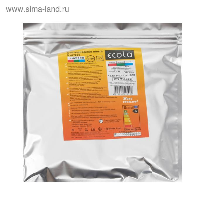 Светодиодная лента Ecola PRO 5 м, IP20, SMD5050, 60 LED/м, 14.4 Вт/м, 12 В, RGB