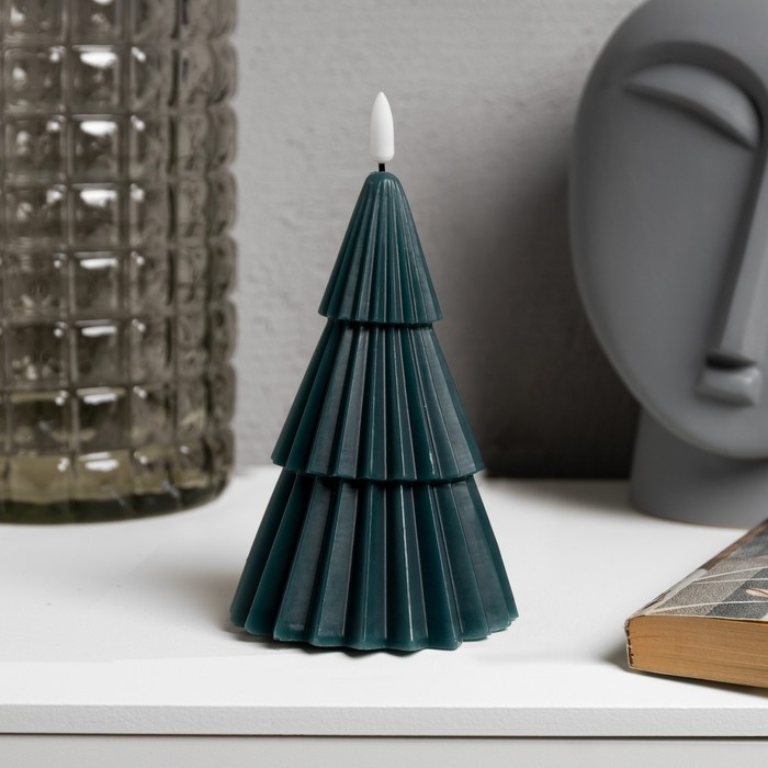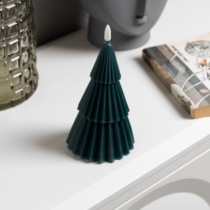 Светодиодная свеча «Ёлка зелёная» 10 × 18.5 × 10 см, воск, батарейка CR2032 (в комплекте), свечение тёплое белое